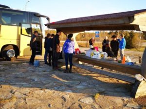 Aamu oli normaali ripeämpi. Klo 8:00 kokoonnuttiin syömään aamupalaa ja valmistelemaan eväsleipiä matkalle. Aikeinamme oli kiirehtiä bussiin ja lähteä ajamaan klo 9:00 mennessä, mutta bussiin päästiin vasta viittä minuuttia yli ja lähdettiin vasta kahtakymmentä yli liikkeelle. Innokkaat biologit orientoituivat alusta alkaen lajiston havainnointiin, jotkut löysivät energiaa viimeistelemään äidinkielen rästitöitä, suuri osa lamaantui alkumatkan ajaksi.